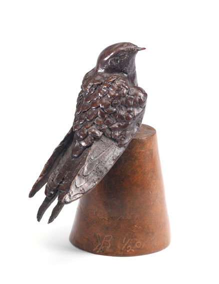 (Limited Edition of 12) 7/12 “The inspiration for this bronze came from one of my larger paintings. Having watched immature Swallows landing on wires in a friend’s paddock and resting on the stable door it became a wonderful subject to paint and then to convert from paint to bronze and indeed I have done both for customers to display together”. Swallow on Flowerpot